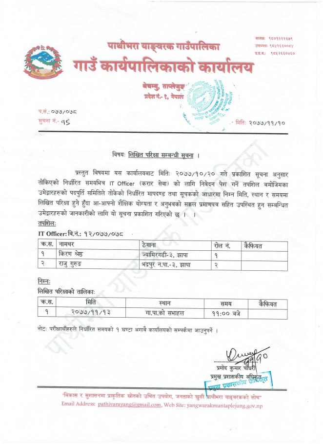 लिखित परिक्षा सम्बन्धी सूचना ।