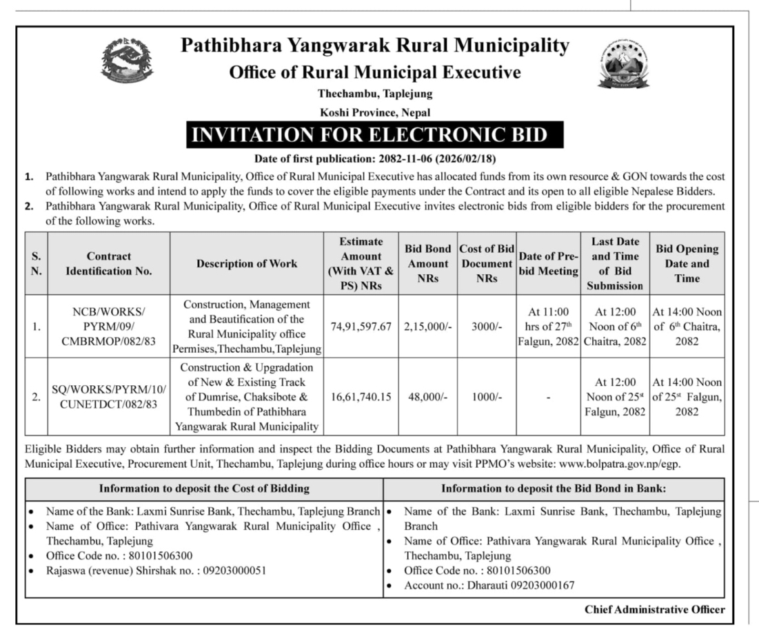 सार्वजनिक खरिद/बोलपत्र सूचना