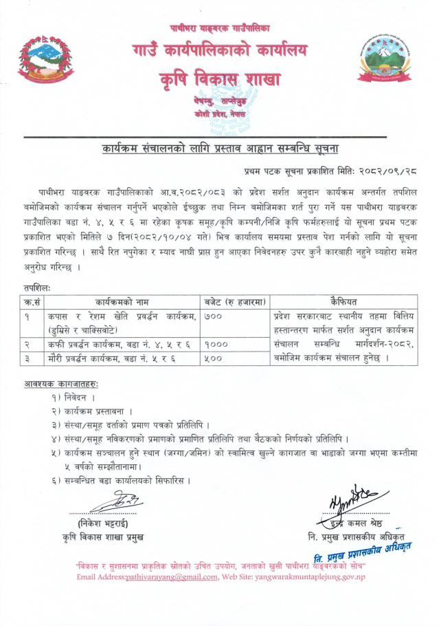 कार्यक्रम संचालनका लागि प्रस्ताव आह्वान सम्बन्धि सूचना ।
